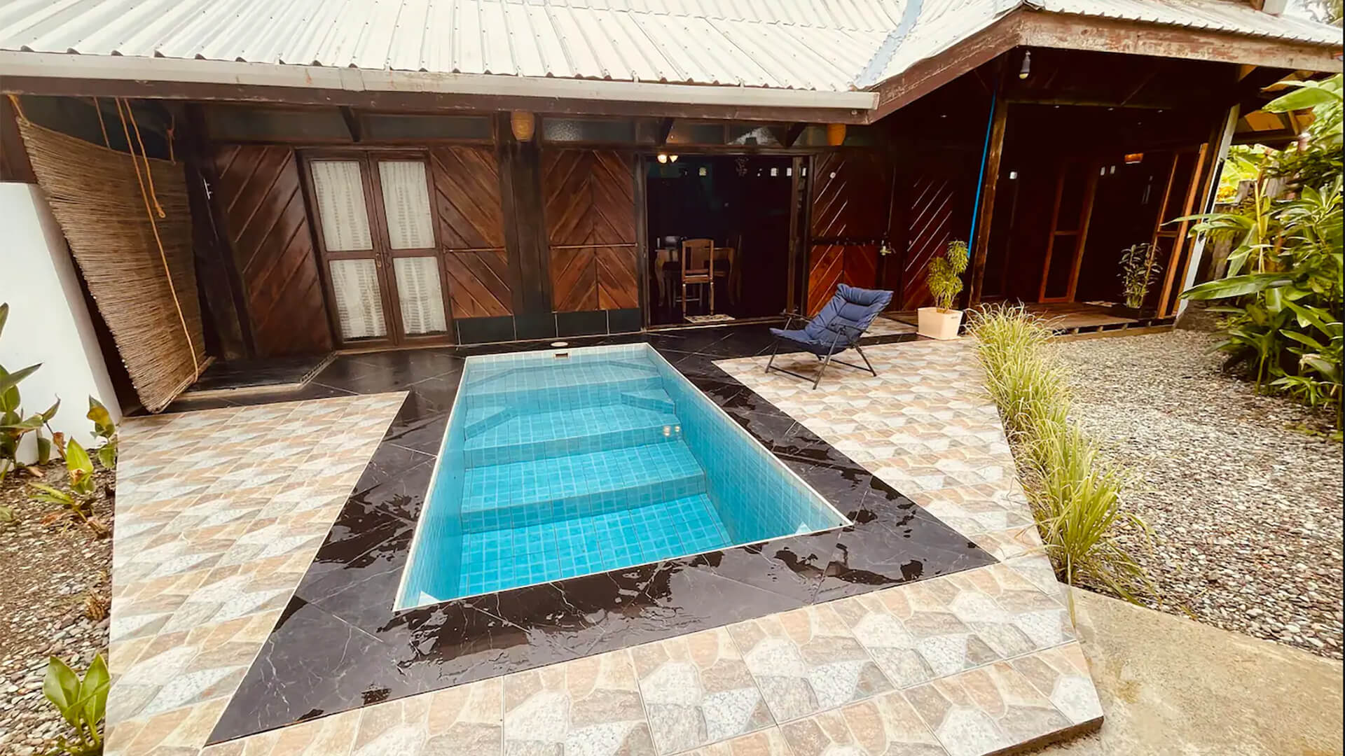 Large furnished living room, bathroom with hot shower, TVs in every bedroom and a large private patio with pool. The house is within a short walk to the famous Catangnan Sunset bridge and beach, where you can swim, sunbathe and watch the sunset.